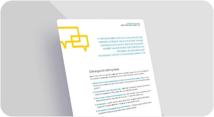SUCCESSFACTORS / WHITEPAPER WInnIng THROUgH TAlEnT In UnCERTAIn TImES “ In TIMES of EconoMIc uncERTAInTy, THERE IS noTHInG MoRE IMPoRTAnT oR STRATEGIc THAT WE cAn BE DoInG To EnSuRE conTInuED BuSInESS SuccESS THAn TAlEnT MAnAGEMEnT. noW MoRE THAn EvER WE nEED To BE focuSInG on HIGH PERfoRMERS AnD DEvEloPInG TAlEnT.” TESS REInHARD, DIREcToR of oRGAnIzATIonAl cAPABIlITy, cDW 5 Strategies for Getting Ahead Based on work with more than 2,000 leading businesses on maximizing people performance, SuccessFactors recommends the following five strategies that deliver superior results in adverse economic conditions: 1. Establish clarity of goals and rapidly align your workforce to execute the new strategy — When change is forced upon your business by the external environment, you cannot afford to lose focus or to delay the necessary course shift. 2. Cut with precision, if you must, but not bluntly — If layoffs become necessary, view them as your chance to weed out the low performers and let your best talent grow. Optimize the workforce! 3. Focus on your core talent and invest where it counts — Identify the talent that will be essential for your new strategic direction and invest heavily when others are cutting. Turmoil is when leaders emerge. 4. Be transparent — Avoid the rumor mills. During uncertain times, transparency drives trust and employee engagement. Companies with high trust financially outperform those with low trust. 5. Compensate more strategically: pay only for performance — Optimize your spend: avoid the mistake of spreading limited bonus resources evenly across top- and low-performers. 3